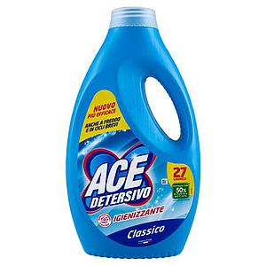 Ace Lavatrice Igienizzante Classico 1350 ml – 27 Lavaggi – Detersivo per lavatrice classico della linea Ace. Rimuove lo sporco in profondità, delicato sui capi, efficace anche a basse temperature.